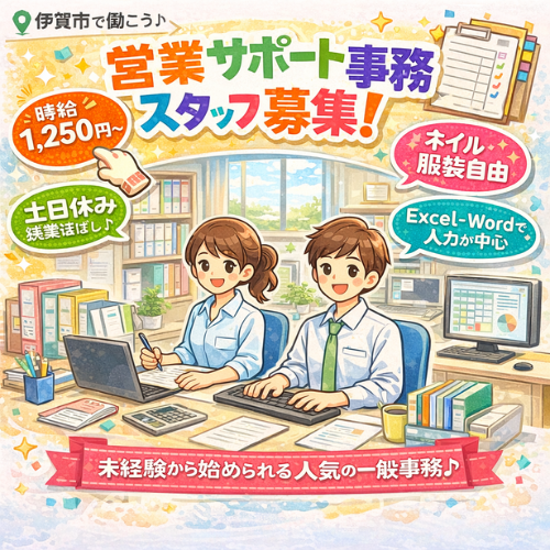 【伊賀市/派遣/日勤/事務】残業ほぼなし×土日休み|Excel・Wordで入力が中心の一般事務