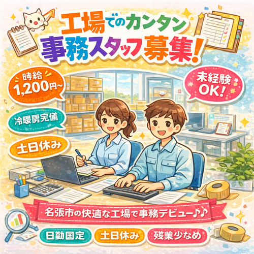 冷暖房完備の快適工場で、事務デビュー。PC入力中心・未経験でも安心して始められるお仕事で…