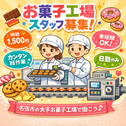 【名張市/派遣/日勤・交代制/工場求人】時給1,500円スタート|未経験OK・お菓子製造スタッフ